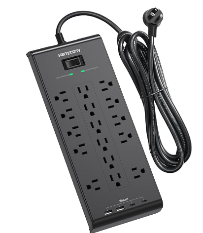 2 AC outlets (2.2 inches) with other 14 AC outlets & 4 USB charging ports (5V/3.1A, 15.5W), 10 feet long extension cord(1875W/15A), surge protector with overload protection protects against power spikes and fluctuations.